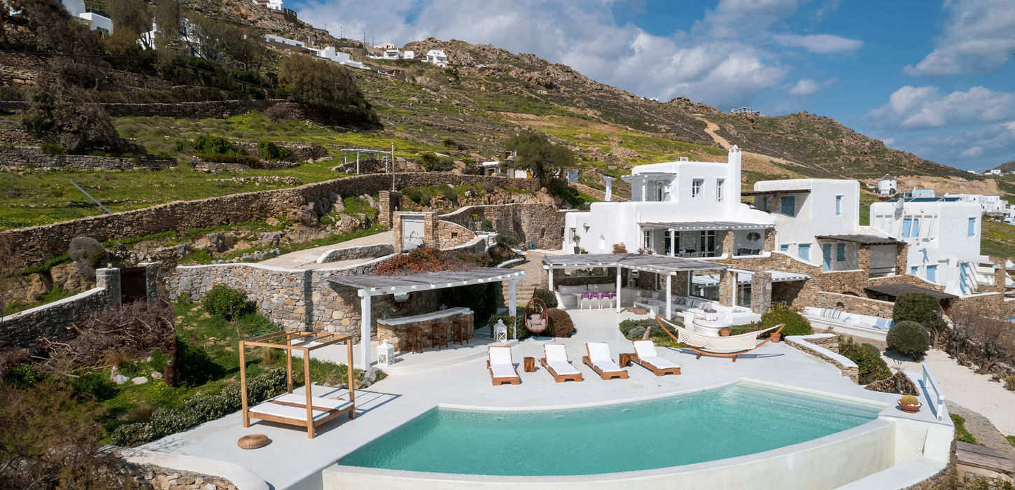 Golden Hour is a seafront villa with 5 bedrooms and 5 bathrooms and is located right in front of the famous beach Kalo Livadi with the white powder sand and turquoise waters. This unique location offers unobstructed sea view and beautiful sunrise. The beach is organised with famous beach clubs but is big enough to provide free space as well.