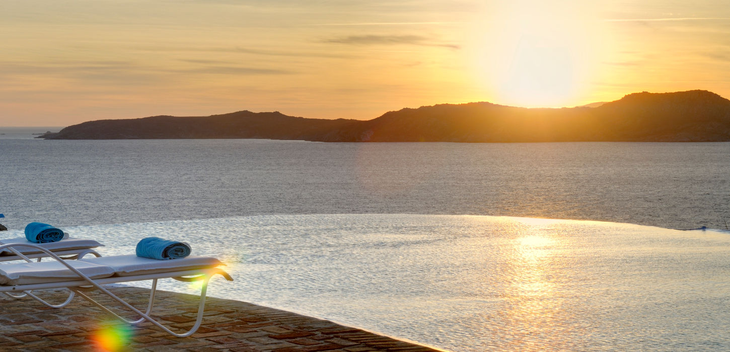 This luxurious 4-bedroom villa in Mykonos situated in the south of the Island, in the area of Aleomandra, 80 meters from the sea front with magnificent views, a great sunset ,overlooking the Aegean in the direction of Delos island, well protected by the strong northern winds.