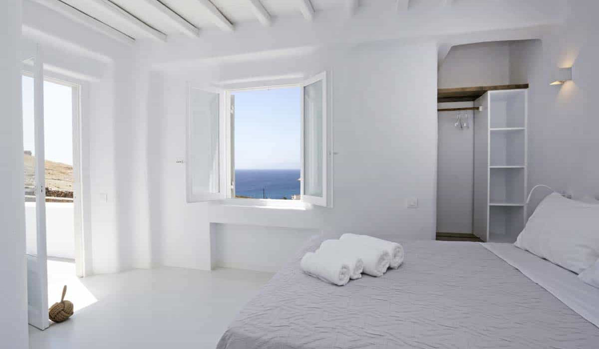 Villa Mad in Love is brand new villa with panoramic view of Kalafatis beach, the only beach in Mykonos awarded with a blue flag for its good water quality and sustainable management. A paradise for windsurfers and water sports.