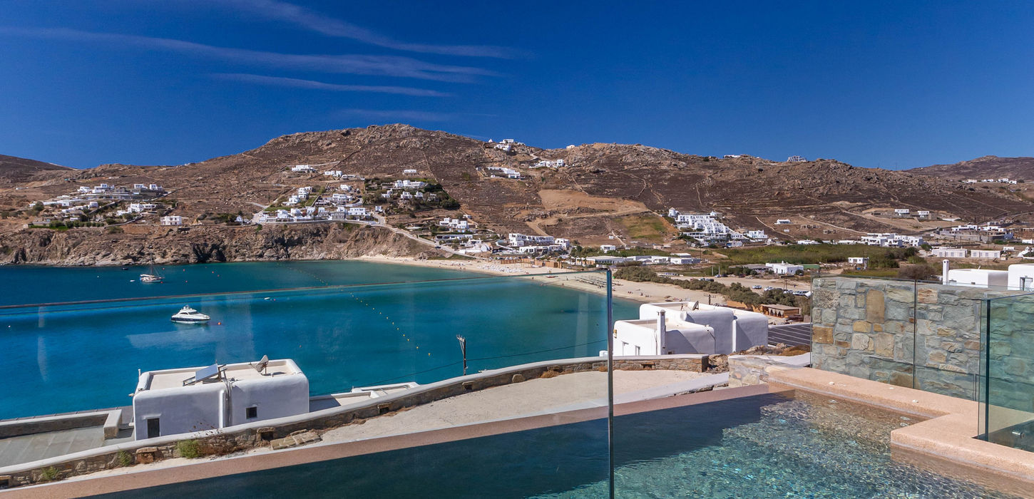 Dining and lounge areas - 1 Luxurious outdoor fully shaded dining area that can accommodate more than 10 guests, having a most magnificent view of the Kalo Livadi bay - Comfortable couches and small lounging chairs and tables - Swimming pool
