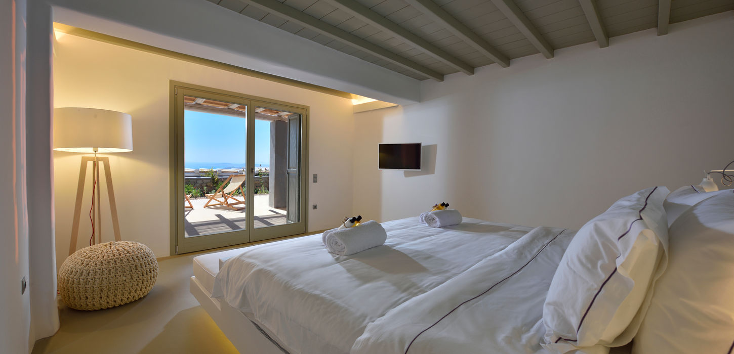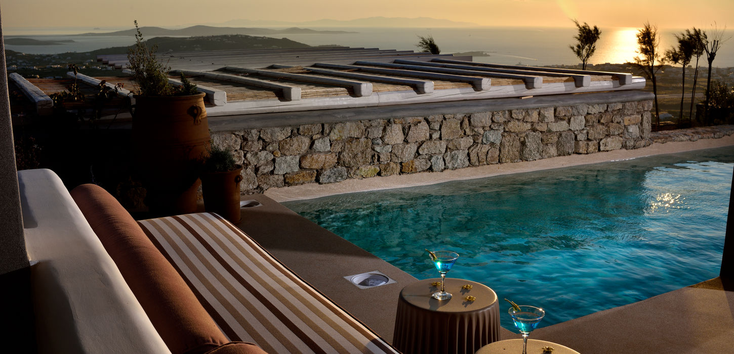 The villa has its own private pool with Jacuzzi (30sqm), magnificent outdoor dining and sitting areas that spread over the 170sqm. The marvelous plantations match perfectly the scenery of Kounoupas hill and provide the isolation needed from other guests in the complex.