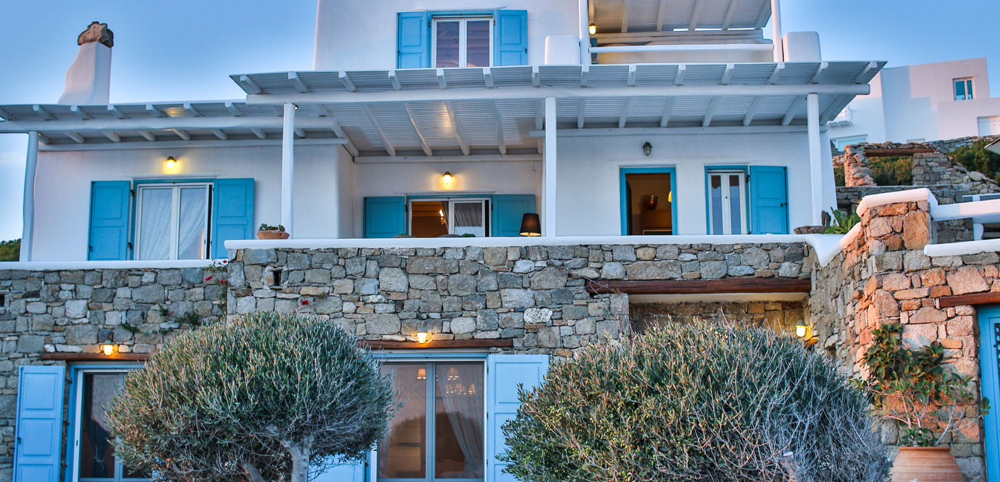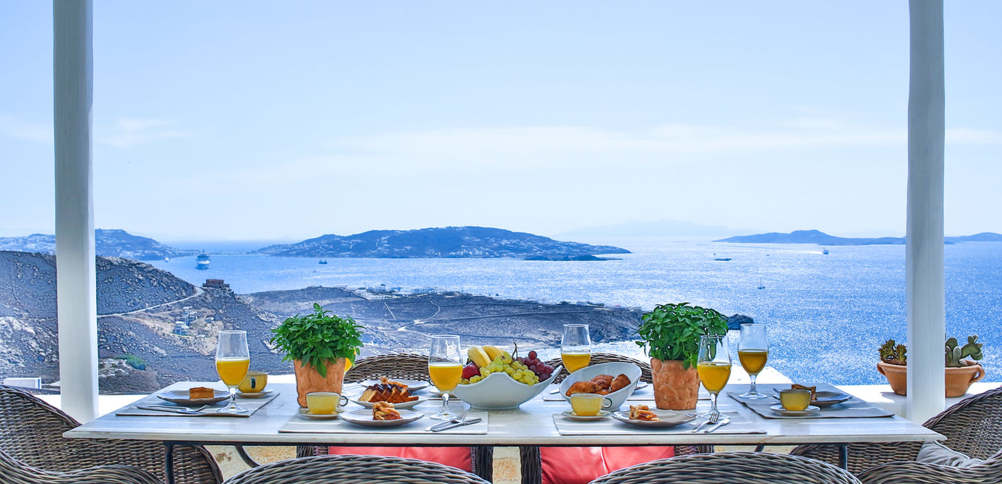 Villa ‘Sunny Days’ is a beautiful property with an amazing view of the Aegean sea and the Islands of Delos, Syros and Tinos. It consists of the main house with 4 bedrooms & 2 independent guest-houses, wonderful outdoor areas, private swimming pool and a garden with olive trees. It is located on the highest point of a villa complex in Choulakia area.